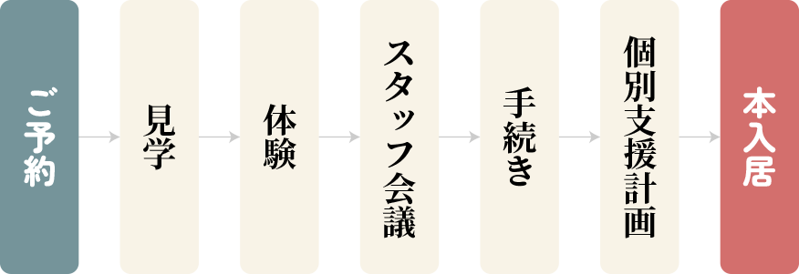 当ホームでは、知的・精神障害者の皆さまのご入居にあたり、専門スタッフによる個別支援計画をたてます。例えば、Ⅰ期(導入期・1か月間)では、「GHでの生活に慣れ、規則正しい生活を送ることができる」、Ⅱ期(定着期・3か月間)では、「GHスタッフへ自分の希望を伝えることができる」、Ⅲ期(訓練期・6か月間)では、「〇〇園に週5~6で通うことができる。」「Ⅳ期(移行期・6か月間)」では、「GHで主体的に生活活動に取り組むことができる」といった目標です。